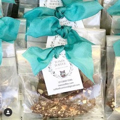 Elevate your wedding day with the exquisite indulgence of Toni's Toffee. Our handcrafted toffee creations make perfect wedding favors, adding a touch of elegance and decadence to your special day. Delight your guests with the irresistible flavors of our gourmet toffee, beautifully packaged and personalized to reflect your unique style. Each bite of our artisanal toffee is a moment of pure bliss, leaving a lasting impression and creating cherished memories. Make your wedding favors truly unforgettable with Toni's Toffee, where love and sweetness come together in perfect harmony.